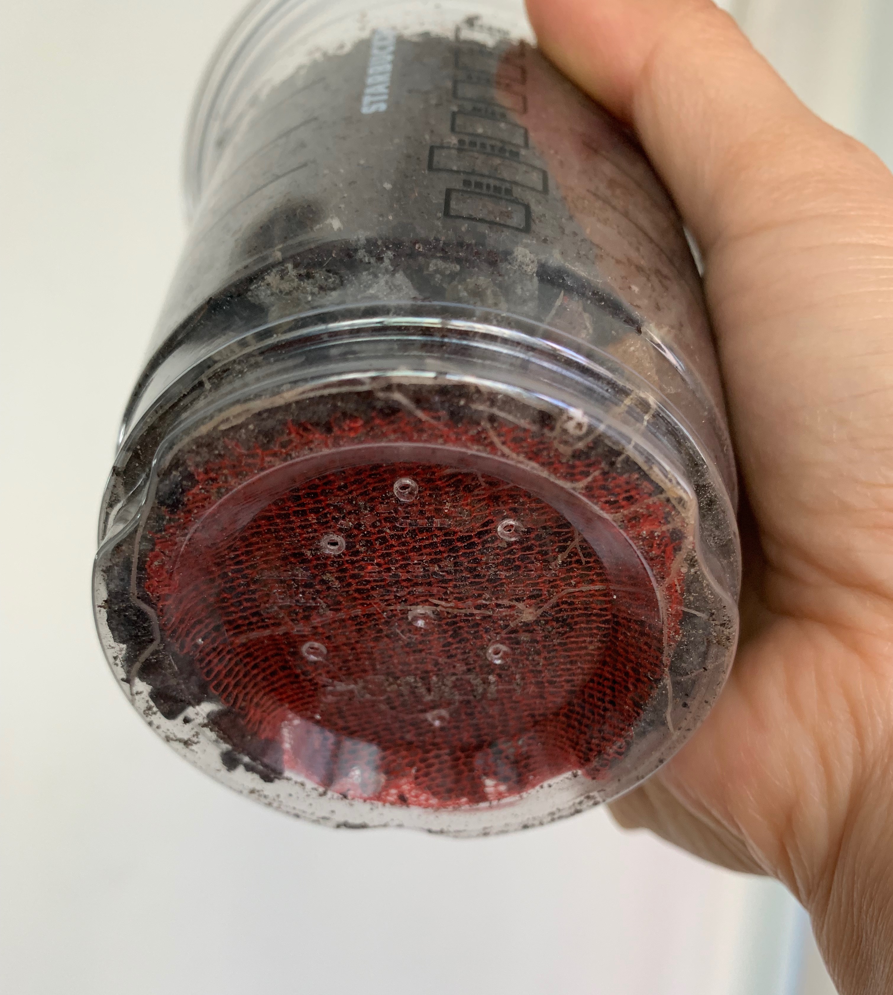 저번에 쓰고 남은 양파망을 잘라서 구멍마다 막아주었어요.
