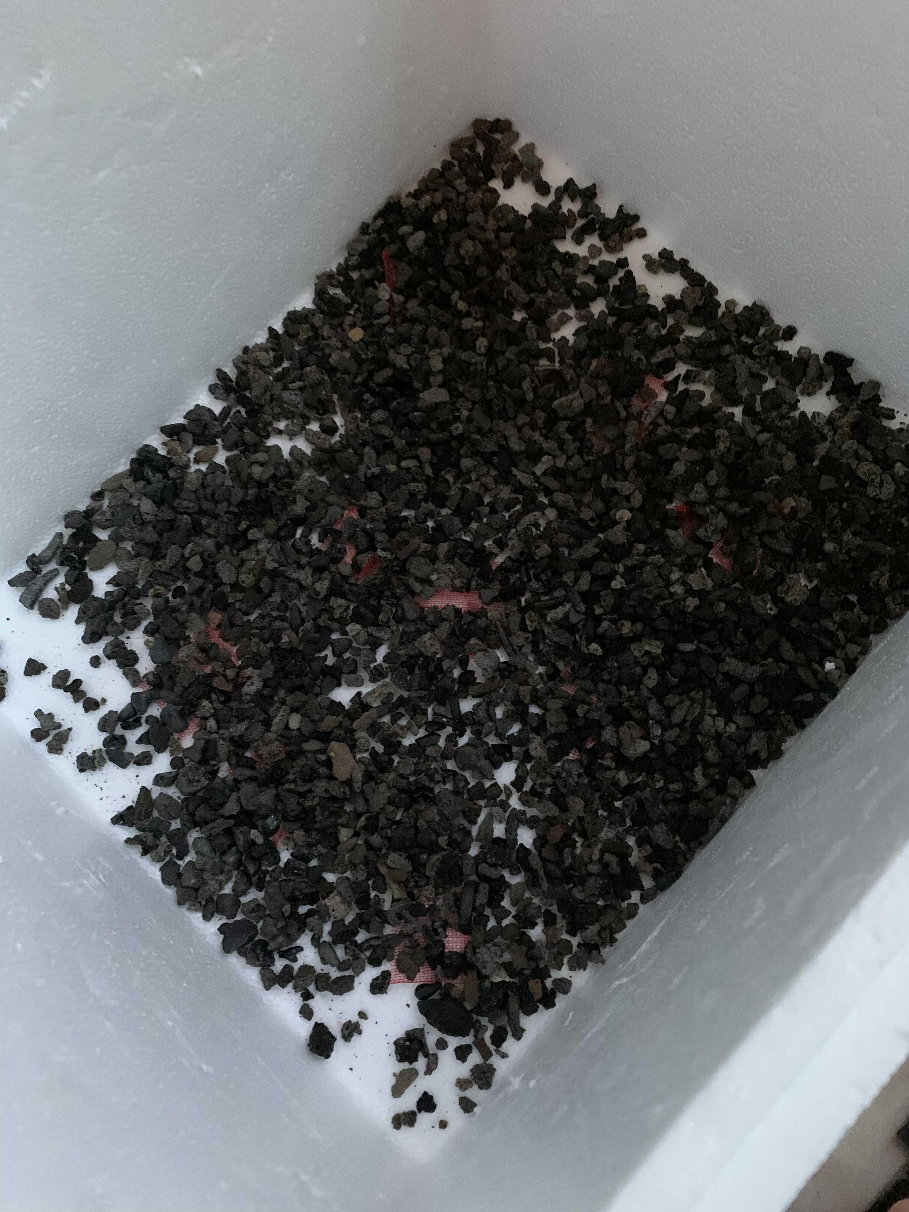 아이스박스가 커서 흙이 제법 많이 들어갔어요.