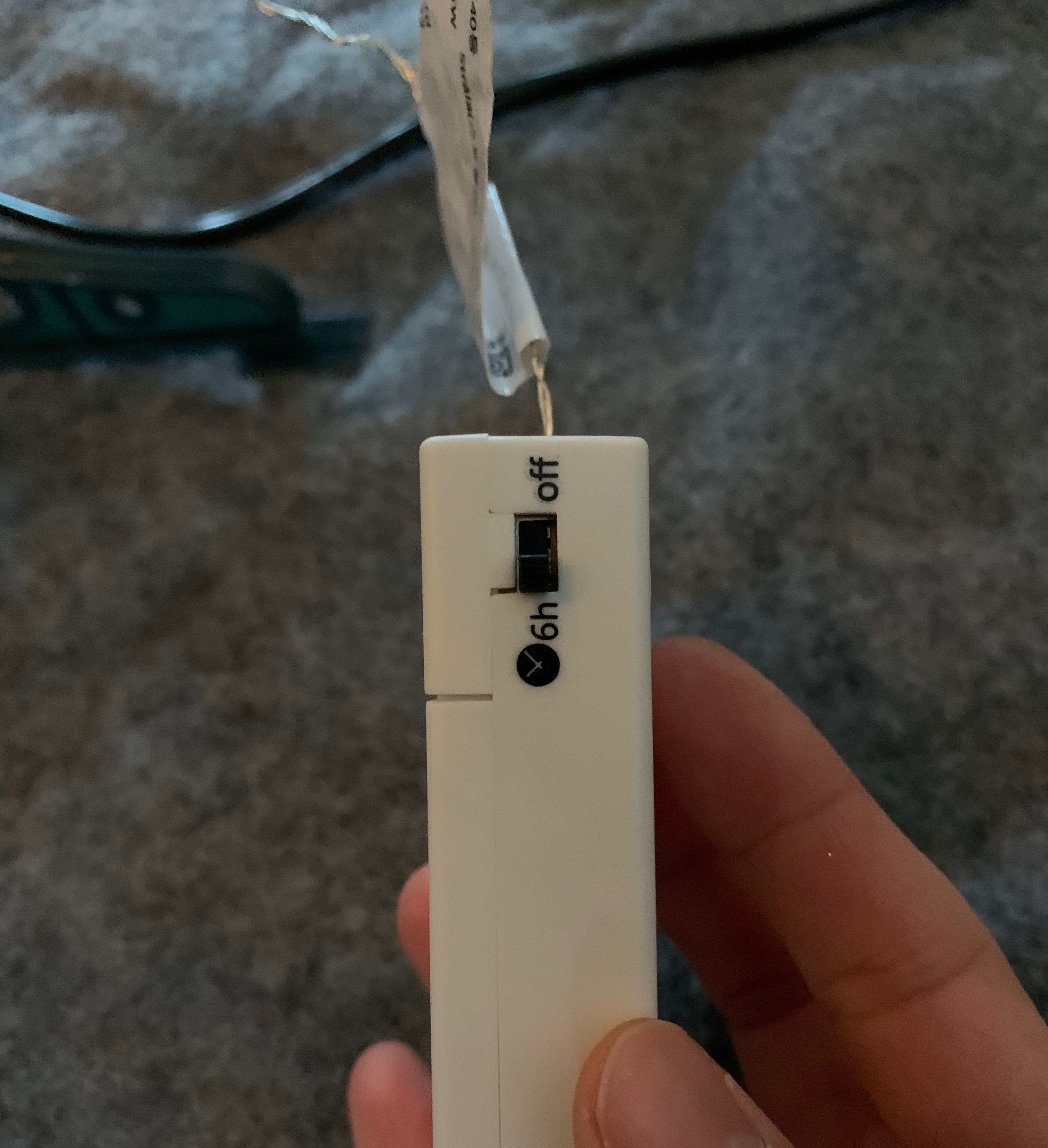 모던하우스에서 산 조명은 말랑말랑한 얇은 세 겹의 초록색 전선줄에 작은 전구가 감겨 있고, 콘센트에 꽂아 쓰는 제품이며 타이머는 없어요.