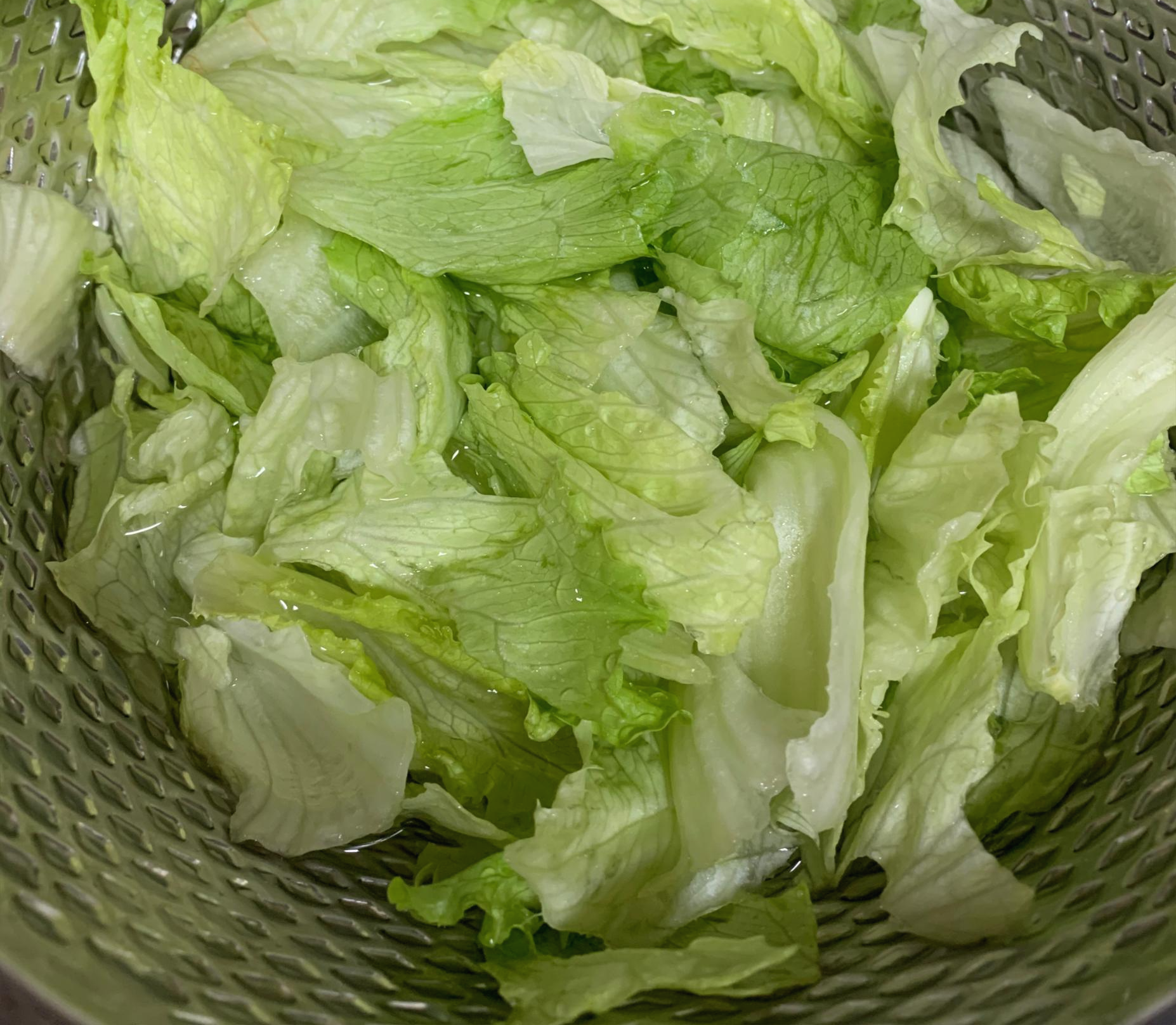 3. 양상추를 씻어 식초물에 1분가량 담근 후 그대로 물기를 빼서 잘게 뜯어줬어요.